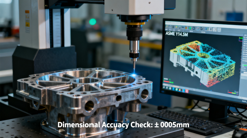 - Geometric dimensioning and tolerancing (GD&T) verification: Checking features like flatness (≤0.001mm), perpendicularity (≤0.002mm), and position (±0.003mm) per ASME Y14.5 standards.